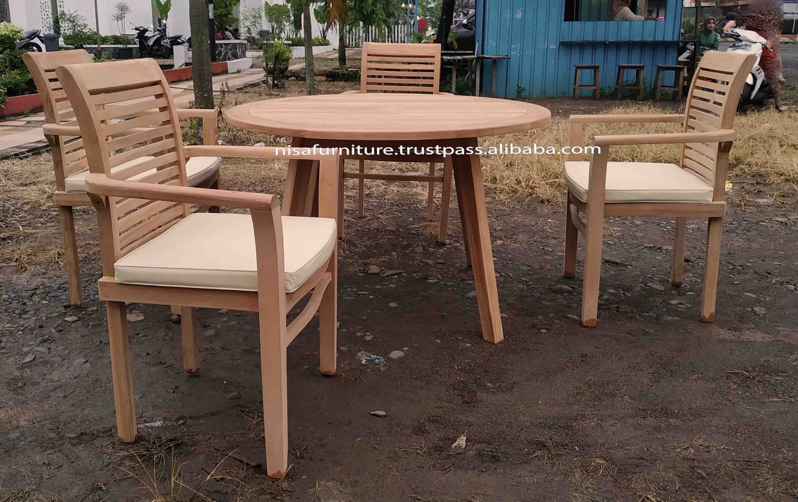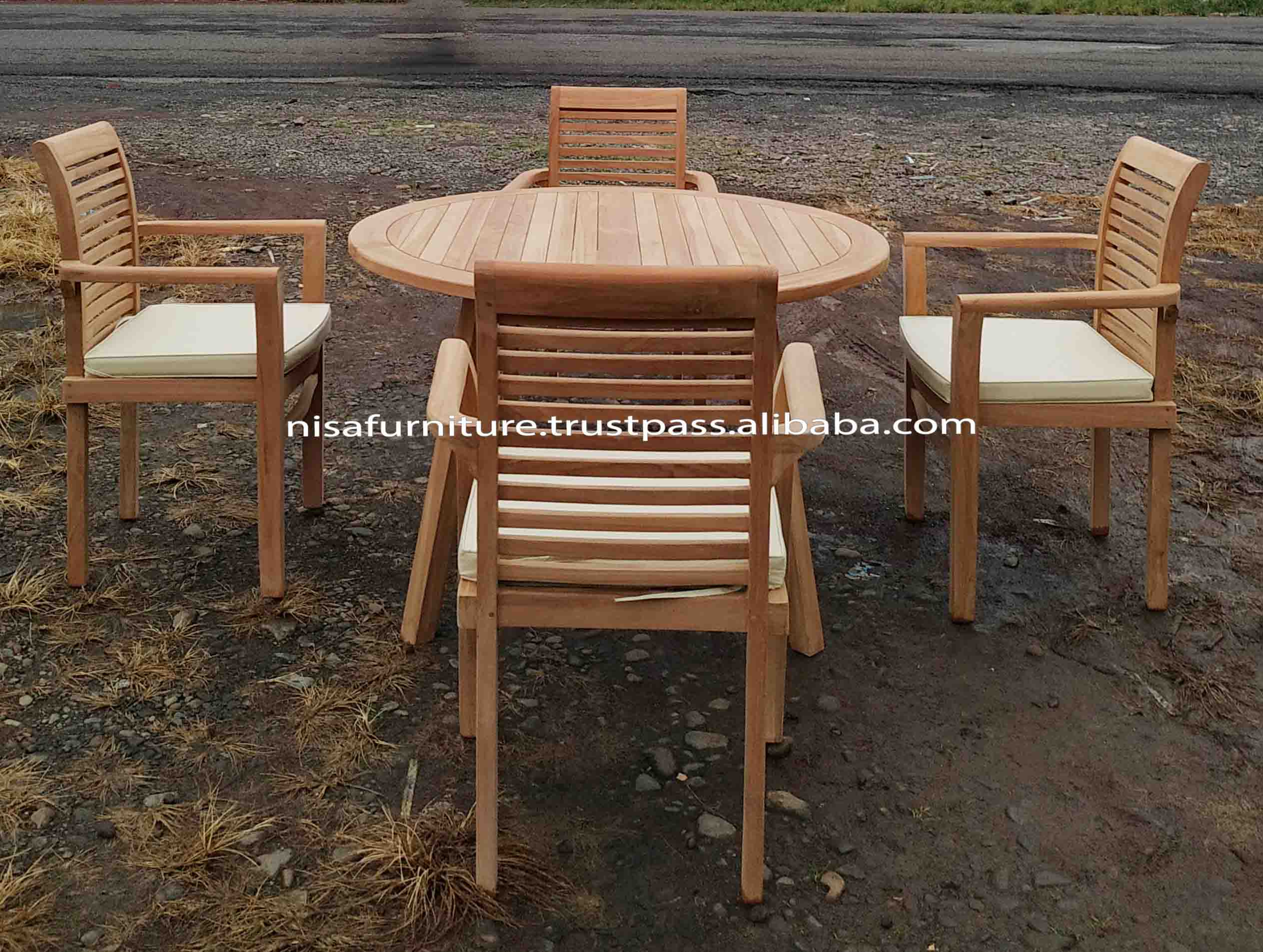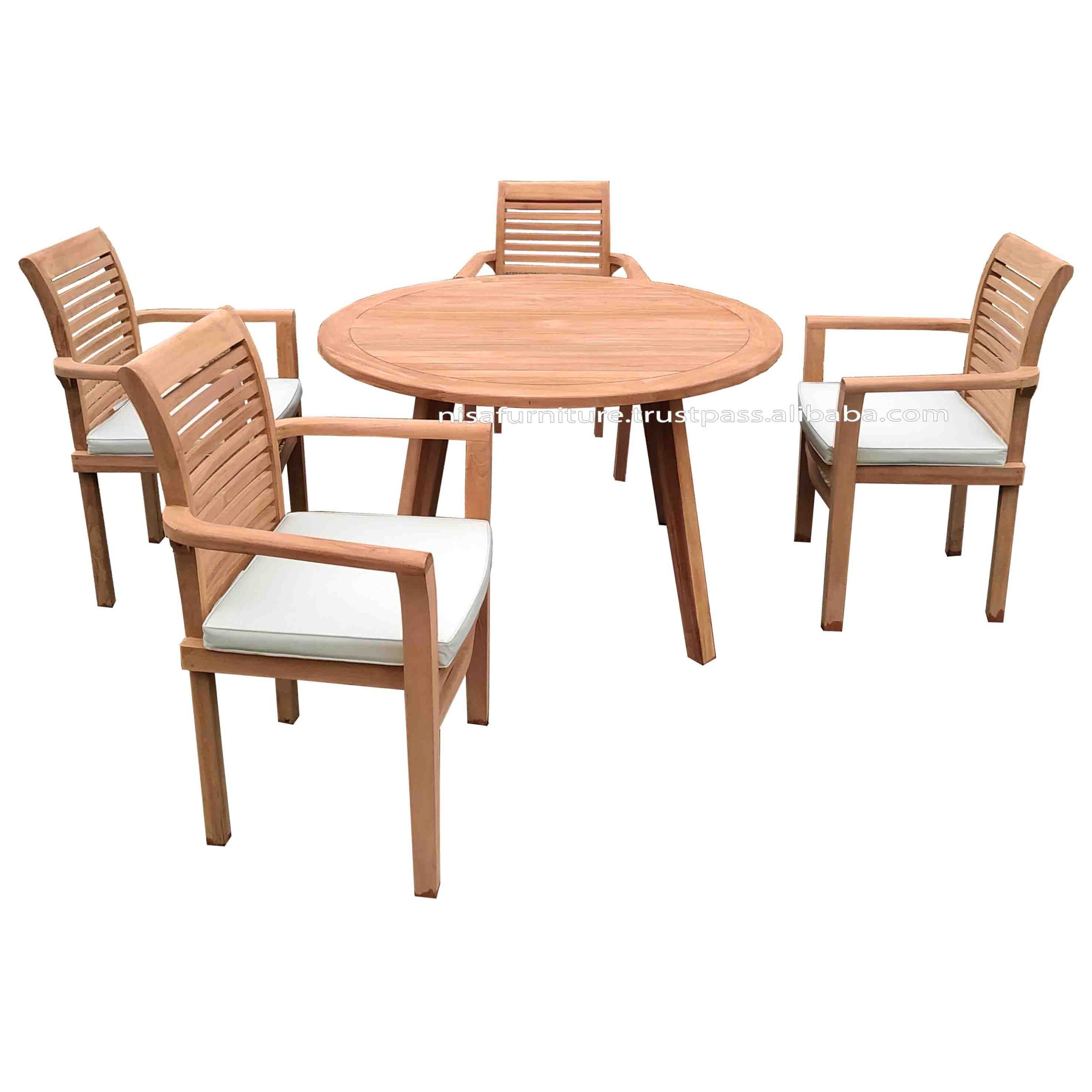 Round table modern design Stacking Chair Horizontal Slats Teak dining chairs and table Outdoor Patio Garden Sets Furniture |