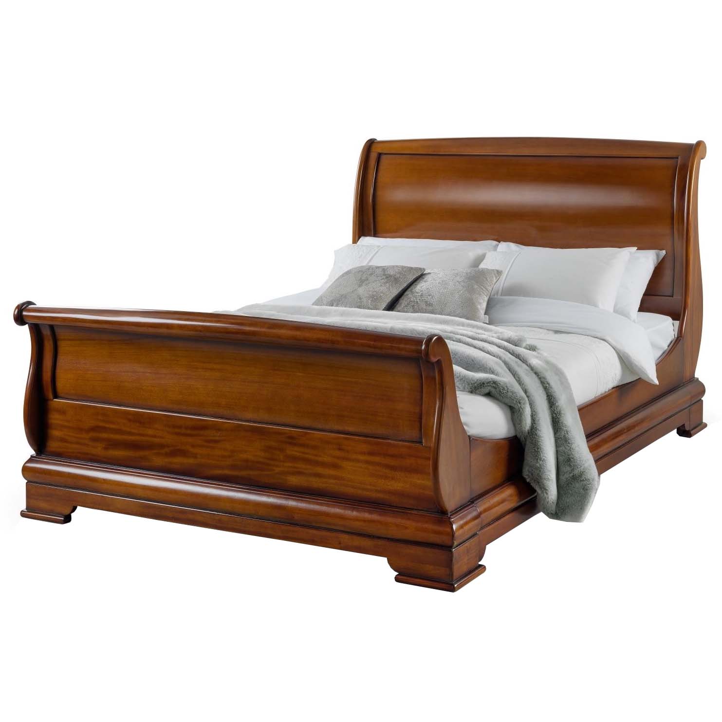 Higher Headboard Classic Brown Walnut Sleigh Wooden Beds bedroom furniture antique Vintage